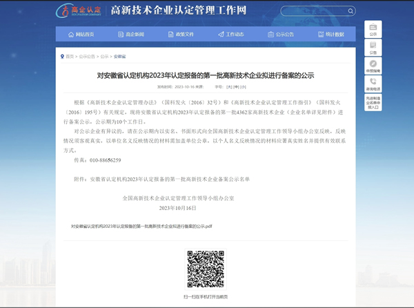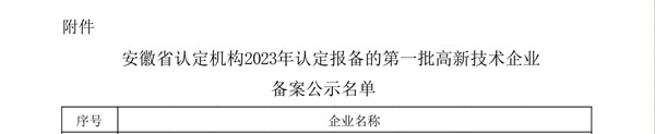 根據(jù)《高新技術(shù)企業(yè)認(rèn)定管理辦法》(國科發(fā)火〔2016〕32號(hào))和《高新技術(shù)企業(yè)認(rèn)定管理工作指引》(國科發(fā)火〔2016〕195號(hào))有關(guān)規(guī)定,2023年10月16日,我公司被認(rèn)定報(bào)備的第一批4362家高新技術(shù)企業(yè)之一。